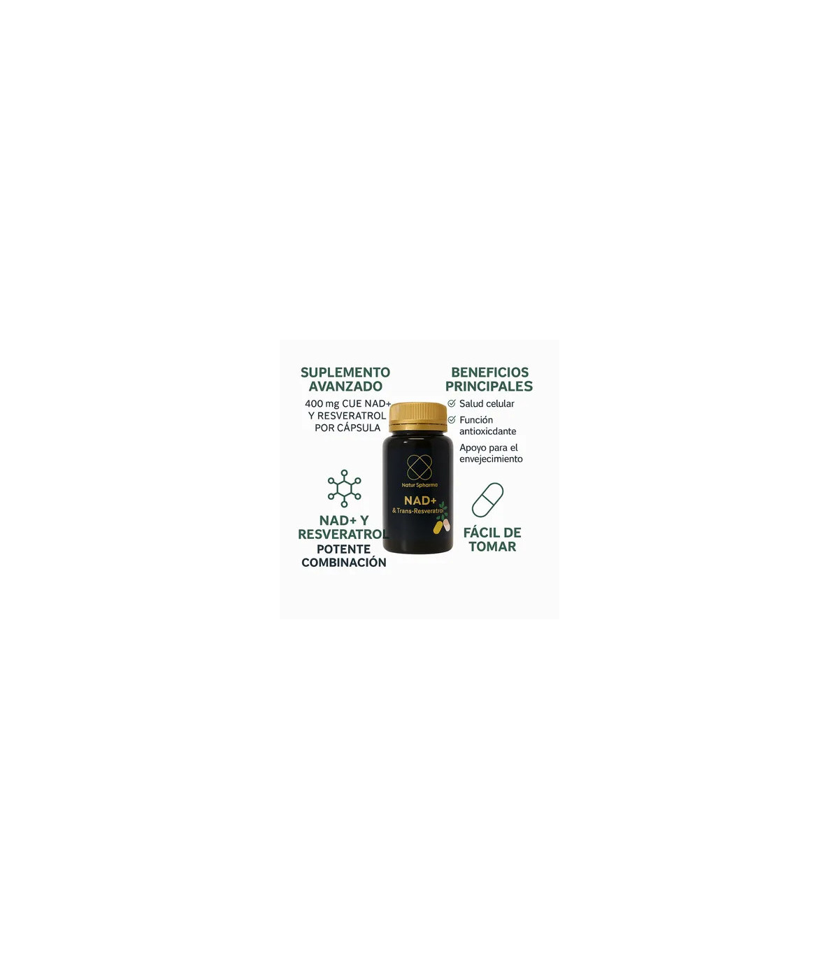 Mejora tu energía celular y apoya la longevidad con NAD+ y Trans-Resveratrol, dos potentes aliados en la protección contra el envejecimiento celular.