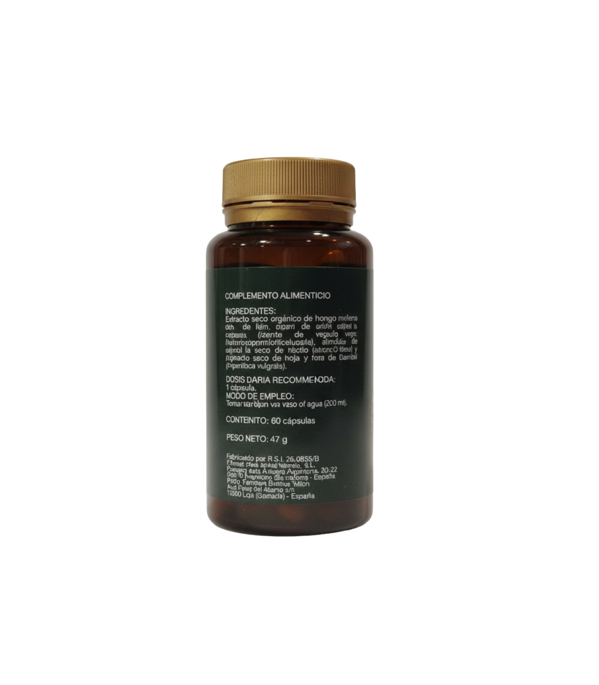 Este hongo medicinal es conocido por su capacidad para apoyar la memoria, la concentración y la claridad mental, además de contribuir al bienestar digestivo y emocional. La adición de vitamina C mejora la respuesta inmunitaria y complementa su acción antioxidante.